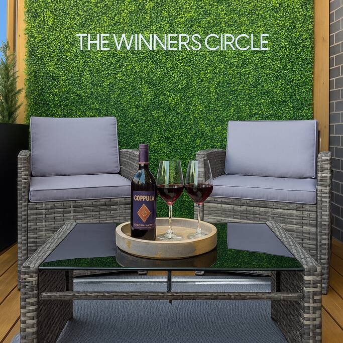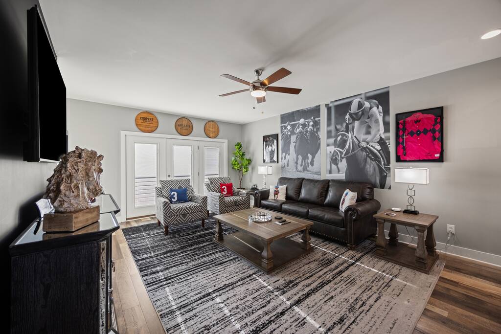 Welcome to the Winner's Circle! Stylish 3-story townhome in the heart of Lexington’s Distillery District, steps from Rupp Arena, Manchester Music Hall & Gatton Park, and the University of Kentucky. This upscale 2BR + pullout sofa home offers luxury design, fully stocked kitchen, smart TVs, blackout curtains, and private patio with bistro lighting, perfect for families, concertgoers, or exploring Bourbon Country. Key Features ☀ Sleeps up to 6 ☀ 2 full bathrooms + 2 half baths ☀ King + Queen + pull-out sofa ☀ Fully stocked kitchen, Nespresso & Keurig machines ☀ Private patio with seating & bistro lights ☀ Smart TVs, blackout curtains, walk-in closets ☀ Dedicated workspace with external monitor ☀ High speed internet ☀ Walkable to Rupp Arena, Manchester Music Hall, Distillery District ☆☆ BEDROOMS ☆☆ Primary (3rd floor): King bed, blackout curtains, smart TV, walk-in closet, ensuite full bath. Second Bedroom (3rd floor): Queen bed, blackout curtains, smart TV, walk-in closet, its own full ensuite bath access. Pullout Sofa (1st floor): In comfortable living area, with smart TV, adjacent half bath, blackout curtains for privacy. ☆☆ BATHROOMS ☆☆ You’ll have 2 full bathrooms (both richly appointed with fluffy towels, body wash, shampoo, conditioner, and essentials) and 2 additional half baths for guests, so no waiting in line during busy mornings or after late nights. ☆☆ KITCHEN & RELAXING AREAS ☆☆ The heart of the home is a modern, fully stocked kitchen, high-end appliances, cookware, utensils, dining settings, plus both Nespresso and Keurig for your preferred brew. The main living area (on the second floor) blends comfort and style with plush seating, smart TV, and easy flow to the patio. It’s an ideal setting for relaxing, chatting, or gearing up before a concert or game. There is also an additional living area on the first floor equipped with a half-bath, smart tv, and dedicated workspace. ☆☆ OUTSIDE SPACE ☆☆ Step outside to your private patio overlooking the Distillery District, draped in bistro lights and outfitted with seating, perfect for morning coffee or evening wind-downs. Parking includes your driveway spot, shared complex parking, and additional on-street options for extra flexibility. ★☆ Book Today & Let Us Take Care Of You ☆★ Don’t miss out on this upscale, convenient getaway in one of Lexington’s most vibrant neighborhoods. Book now and relax. We’ll take care of the rest!