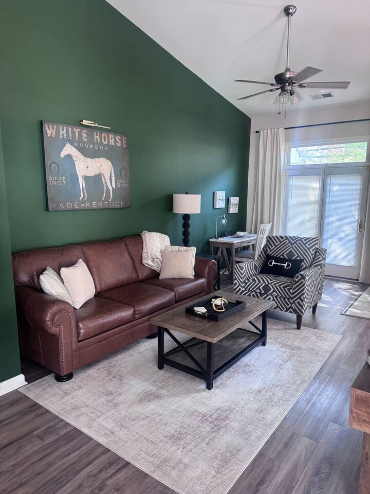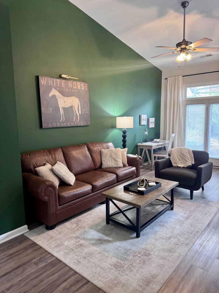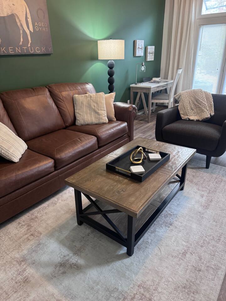 Key Features ☀ Sleeps up to 6 guests ☀ 2 bedrooms, 2 full bathrooms ☀ One-level layout—no stairs, easy access ☀ High-speed internet + dedicated office space ☀ Fully stocked kitchen: service for 8, coffee bar, wine glasses ☀ Outdoor patio with BBQ grill ☀ Designated parking spot + overflow parking ☀ Kid-friendly: pack-n-play, tailgating chairs & cooler ☀ Walking distance to the university and major hospitals ☆☆ BEDROOMS ☆☆ Primary Bedroom: King bed, ensuite bath, smart TV, extra bedding, plush pillows and blankets. All on the main level for convenience and comfort. Second Bedroom: Queen bed plus a sofa-pullout in the living space giving flexible sleeping arrangements. Shared access to the second full bath ensures privacy and ease for all guests. ☆☆ BATHROOMS ☆☆ Two full bathrooms, each fully stocked with premium toiletries—body wash, shampoo, conditioner, hair dryers, and plush towels. Every guest enjoys a refreshed, resort-level experience without needing to bring extra. ☆☆ KITCHEN & RELAXING AREAS ☆☆ Your fully equipped kitchen features refrigerator, stove, microwave, dishwasher, grilling utensils, pots & pans, service for eight, and a coffee bar ready for early game-day brews. The dining area and living space are designed for connection and relaxation whether you’re streaming your favorite show or sharing a meal. And if work or school needs sneak in, the dedicated office nook has you covered. ☆☆ OUTSIDE SPACE ☆☆ Step out onto the private patio with a BBQ grill and outdoor seating, perfect for tailgate-style cook-outs or a relaxed evening drink under the stars. The unit includes a designated parking spot, with additional overflow parking so arrival and departure are stress-free. ★☆ Book Southern Charm Today & Let Us Take Care Of You ☆★ Whether you’re joining us for a game, a family stay or a getaway filled with comfort and convenience, we’ve prepared everything so you can just arrive and unwind. Secure your dates now and let us handle the details, your ideal Lexington home base awaits. ★☆ Other Things to Note ☆★ ☀ Max occupancy 6 people ☀ No local bookings without prior approval ☀Smoking Fee $1500 ☀Unauthorized Pets $500 ☀Unauthorized Parties $1500 ☀Unauthorized Late Checkout - $250